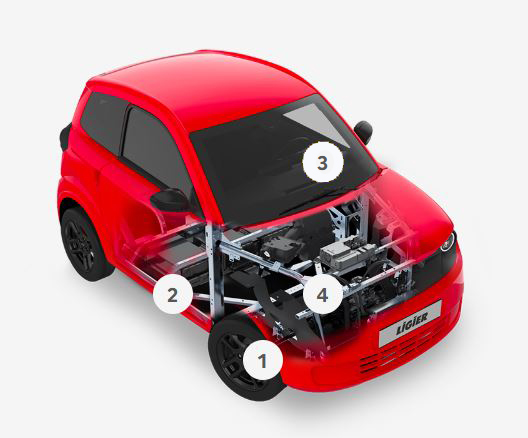 Exclusieve Ligier-technologie die extra controle en zorgt voor een veilig weggedrag en makkelijk en zonder inspanning parkeren.